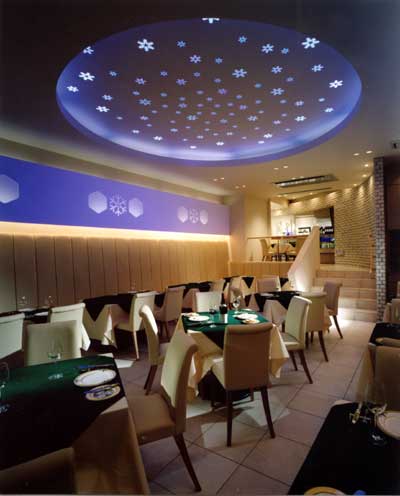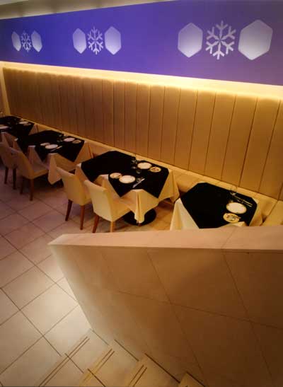豊富な種類のチーズの白を基調とし、素材の違ういくつかの材料を使用しながら空間を全て白で覆い、その中心に時報と共に天空から雪(コーポレートアイデンティティー)が舞い降りる光の演出と、壁にはスノウブラン(ブランドアイデンティティー)のマークを使用し、和紙を透かして浮かび上がる光の演出を仕掛けている。ここの企業でしか使用できないデザインを効果的に演出し、顧客にさりげなくメッセージを伝えることを意図し、時を刻む光空間が、顧客の記憶として心に残るようなデザインを試みた。